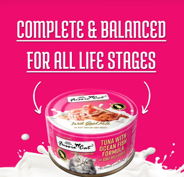 Introducing our newest line to the Fussie Cat family, Fussie Cat with Goat Milk! Our new line of gourmet cat food features delicate, tender bites of tuna with a creamy goat milk gravy to make up a complete and balanced diet for your carnivore's connoisseur! Fussie Cat with Goat Milk is rich in DHA to help support healthy vision and brain development and is fortified with vitamins and minerals.