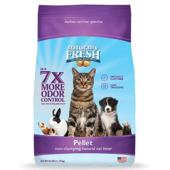 Unscented non-clumping walnut shell pellet litter for cats and small animals. Neutralizes odors up to 7X more than other leading non-clumping pellet litters.
