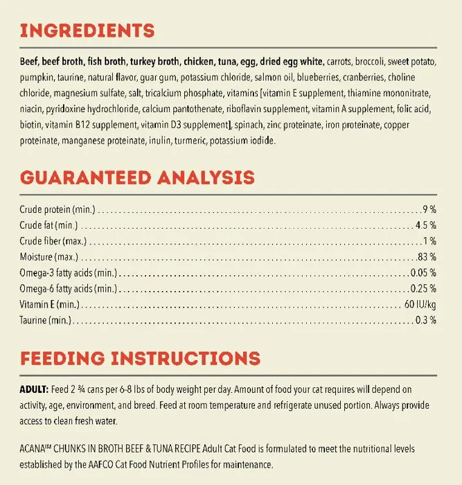 Acana Cat Chunks In Broth Beef Tuna Can 3oz 12/cs 2cs=mc