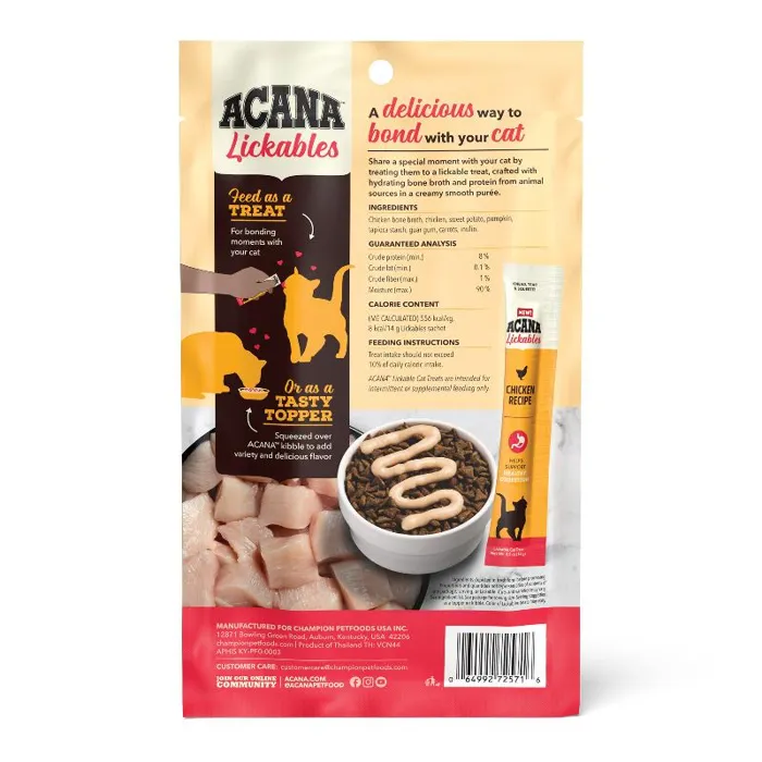 Acana Cat Lickables Chicken 5ct Treat 2.5oz 10/cs 6cs=mc