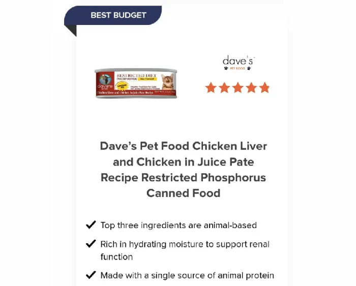 Daveโs Pet Food Kidney Support Wet Canned Cat Food for Renal Health (Chicken Liver & Chicken in Juicy Pate), Non-Prescription Low Phosphorus Restricted Diet (5.5 oz, Case of 24)