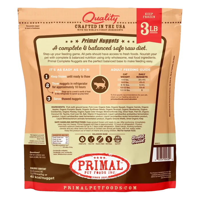 Raw Frozen Feline Turkey Formula Nuggets Cat Food 3-lb