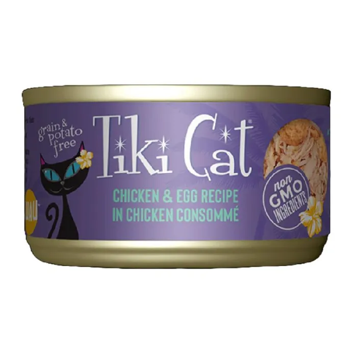 Tiki Cat Gourmet Whole Food Brand Cat Food Koolina Luau is shredded chicken breast and egg prepared in consommรญยฉ for a grain free, gravy free, zero carb meal.