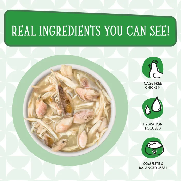 Chicken Broth, Chicken (Boneless, Skinless Breast), Mackerel, Tapioca Starch, Sunflower Seed Oil, Calcium Lactate, Xanthan Gum, Tricalcium Phosphate, Choline Chloride, Taurine, Zinc Sulfate, Potassium Chloride, Vitamin E Supplement, Nicotinic Acid (Vitamin B3), Ferrous Sulfate, Thiamine Mononitrate (Vitamin B1), Calcium Pantothenate, Vitamin A Supplement, Manganese Sulfate, Riboflavin Supplement (Vitamin B2), Pyridoxine Hydrochloride (Vitamin B6), Copper Sulfate, Vitamin D3 Supplement, Folic Acid, Potassium Iodide, Biotin, Sodium Selenite, Vitamin B12 SupplementGuaranteed Analysis