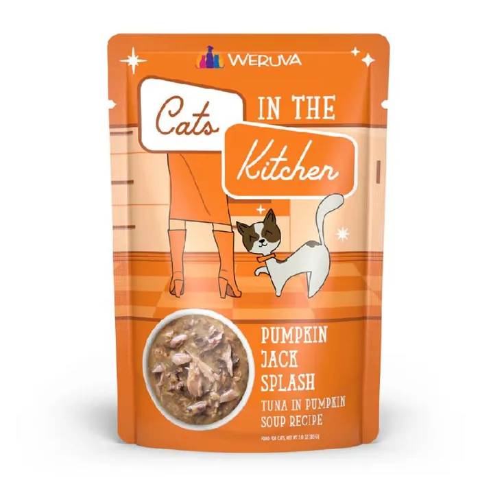 Why are there so many cats in the kitchen you ask? Probably because you're feeding your cats Weruva Cats In the Kitchen Pumpkin Jack Splash Pouches Wet Cat Food and they simply cannot get enough. Full of tuna and pumpkin, this wholesome food is full of protein and free of any grains, GMOs, MSG, and carrageenan for a balanced meal in each can. Pumpkin is also proven to help with any digestive issues, making Weruva Cats In the Kitchen Pumpkin Jack Splash Pouches Wet Cat Food a perfect food for any kitties with tummy issues.