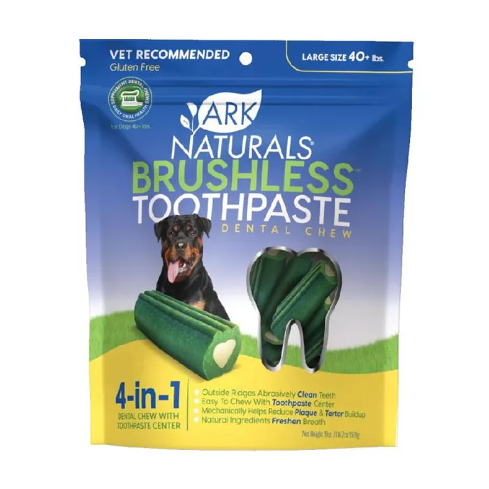 Brushless Toothpaste is a highly digestible dental chew with clinically proven, all natural ingredients.