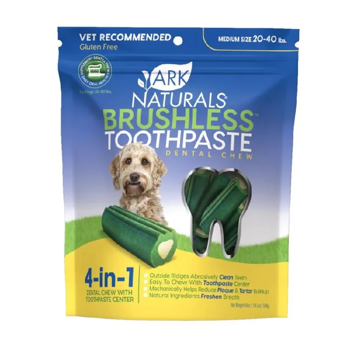 BREATH-LESS Brushless Toothpaste is a highly digestible dental chew with clinically proven, all natural ingredients.
