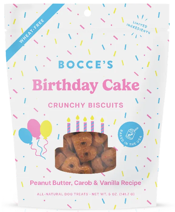 Bocce's Bakery Birthday Cake Treats for Dogs - Special Edition Wheat-Free Dog Treats, Made with Real Ingredients, Baked in The USA, All-Natural Peanut Butter Vanilla Biscuits, 5 oz