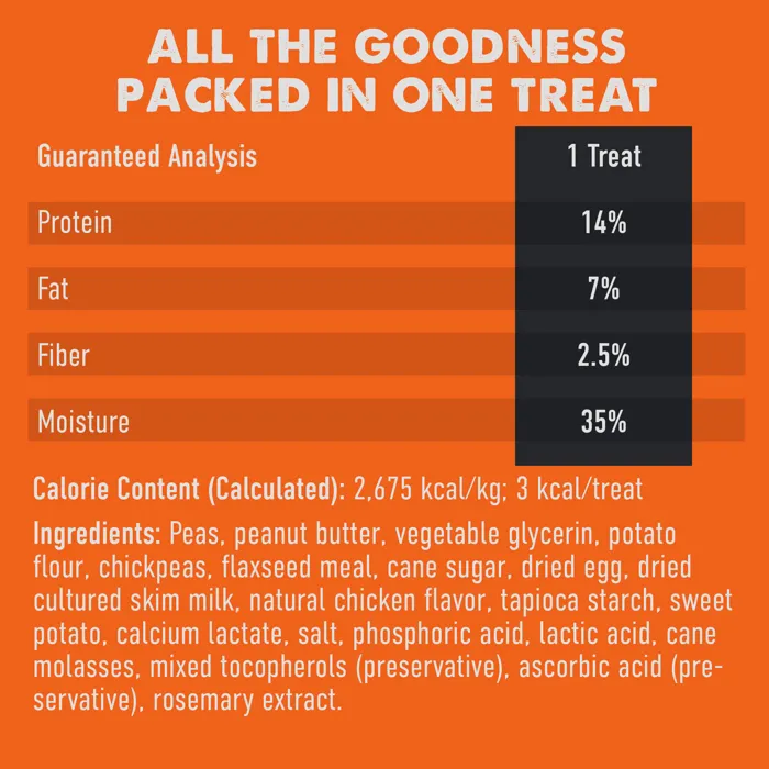 Cloud Star Tricky Trainers has been the choice of professional trainers since 1999, with irresistible flavor to keep dogsโ attention, low calories, and deliciously soft and chewy texture. Each bite-size treat is packed with wholesome ingredients like natural peanut butter, and no corn, wheat, artificial colors or flavors, so you can feel good about rewarding their good behavior - while training or any time!