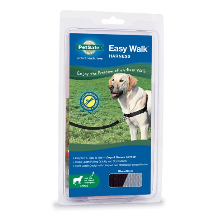 Easy to fit and comfortable to wear, the PetSafeยฎ Deluxe Easy Walkยฎ Harness gently discourages your dog from pulling on the leash. The front-chest leash attachment helps you steer your dog to the side and redirect his attention toward you. The Deluxe Easy Walkยฎ Harness provides the same great benefits as the traditional version, but has additional features such as neoprene lined straps and highly visible, reflective strips.