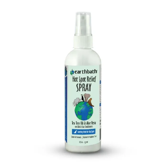 Hot Spot Relief Spritz is formulated to provide naturally soothing relief of hot spots, itching, scratching, and skin irritation. It is blended with tea tree oil, which has long been recognized as an effective and beneficial remedy for hot spots, as well as colloidal oatmeal and organic aloe vera, which are reknowned for their soothing properties. Use between baths, or after bathing with shampoo. Safe for dogs over 6 weeks old. Not for use on cats.