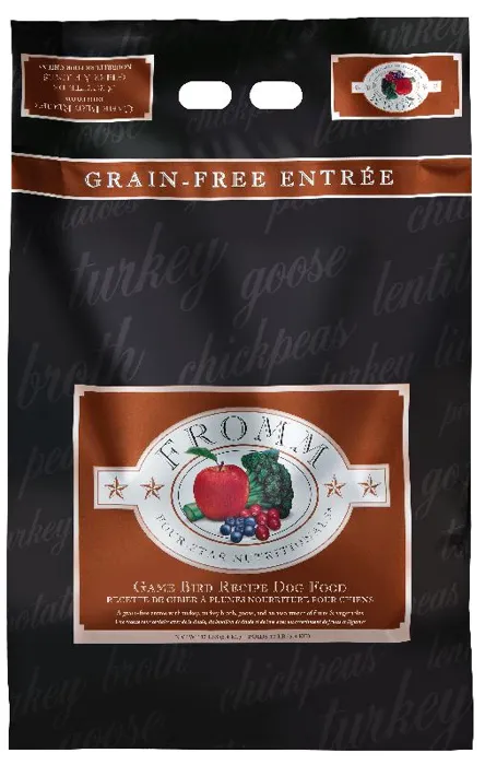 Keeping the needs of your dog in mind, Fromm Four Star Game Bird Dry Dog Food is made to support all breeds and sizes. Made with high quality protein including duck and turkey paired with farm fresh fruits and vegetables, Fromm Four Star Game Bird Dry Dog Food provides well rounded, balanced nutrition for your furry friend without the unnecessary fillers! This recipe also supports the health of your dog‰ۡó»s coat and skin with guaranteed levels of Omega fatty acids and is enhanced with probiotics to ensure that their digestion is right on track! Fromm Four Star Game Bird Dry Dog Food is made with quality ingredients found in the United States with no artificial colors, flavors, or preservatives that any pup is sure to love!
