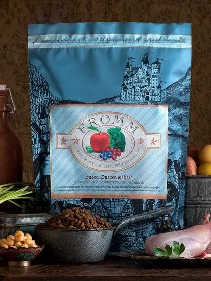 Keeping the needs of your dog in mind, Fromm Four Star Game Bird Dry Dog Food is made to support all breeds and sizes. Made with high quality protein including duck and turkey paired with farm fresh fruits and vegetables, Fromm Four Star Game Bird Dry Dog Food provides well rounded, balanced nutrition for your furry friend without the unnecessary fillers! This recipe also supports the health of your dog‰ۡó»s coat and skin with guaranteed levels of Omega fatty acids and is enhanced with probiotics to ensure that their digestion is right on track! Fromm Four Star Game Bird Dry Dog Food is made with quality ingredients found in the United States with no artificial colors, flavors, or preservatives that any pup is sure to love!