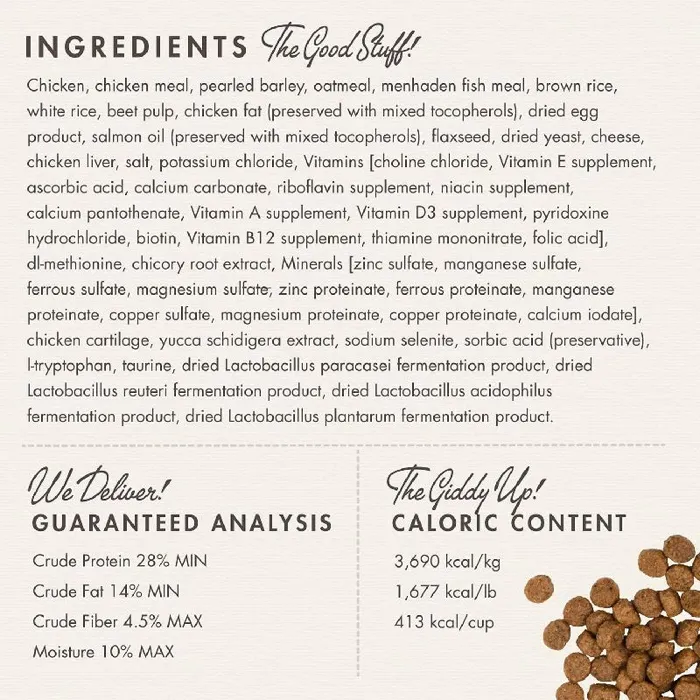 For growing puppies. Tastefully prepared with chicken, brown rice, and eggs.