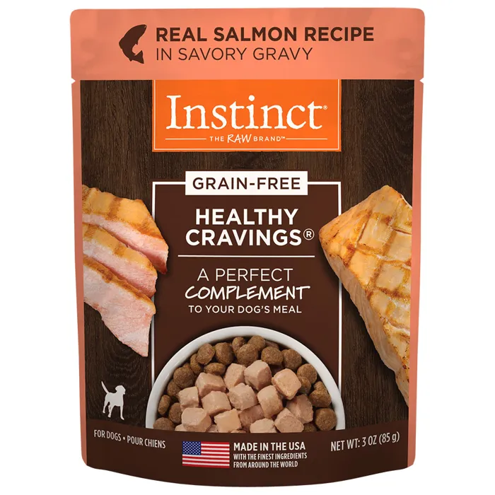 - GRAIN FREE DOG FOOD TOPPER WITH WILD CAUGHT SALMON: Instinct Healthy Cravings wet dog food topper is the perfect natural dog food topper or dog treat for picky dogs and puppies. Add the delicious taste and variety that small dogs to large dogs crave.
