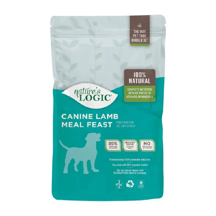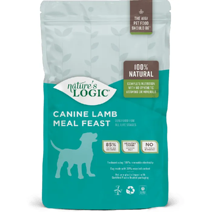 Nature's Logic Lamb Meal Feast is a 100% natural, highly palatable and nutrient rich dry dog food featuring high-quality, high-protein lamb meal from grass-fed lamb as the first ingredient. The diet features concentrates of select fruits and vegetables and the kibble is specially coated with digestive enzymes and plasma protein containing high levels of natural vitamins, minerals and albumin and globulin proteins. Plus, itโs made without the use of potatoes, peas, lentils, wheat, corn, rice, soy, potato or chemically synthesized vitamins, minerals, trace nutrients, carrageenan, guar gum or xanthan gum.