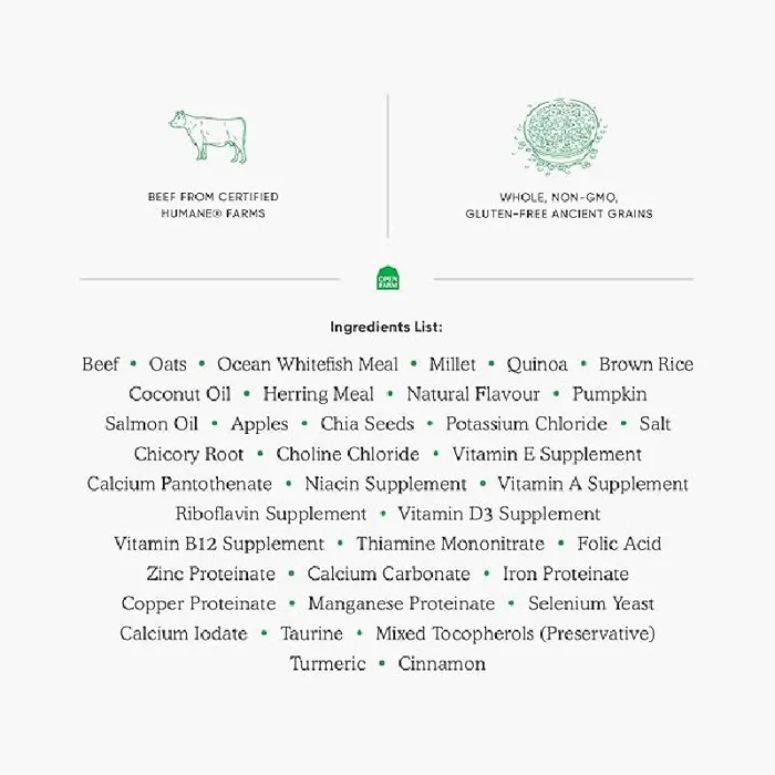 Open Farm Grass-Fed Beef & Ancient Grains Dry Dog Food is a high-quality and nutritious option for your furry friend. Made with 100% grass-fed beef, this recipe provides a protein-rich meal that dogs love. The addition of wholesome ancient grains adds fiber and essential nutrients to support your dog's overall health. This dry dog food is made with a 100% grass-fed Wagyu recipe, ensuring that your dog gets the best quality ingredients. It is also free from artificial flavors or preservatives, making it a natural and healthy choice for your pet. With a weight of 11 lbs, this bag of dog food will last for a while, providing your dog with delicious and nutritious meals.