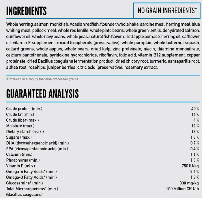 - Six Fish dog food made with an unmatched diversity of fresh, whole, wild-caught fish from New England's Atlantic waters
