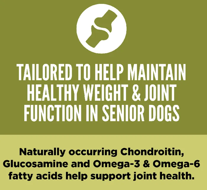 - Senior dog food delivers a diet rich in protein to promote lean muscle mass