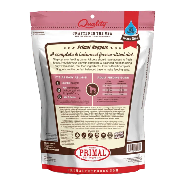 Primal Freeze-Dried Formulas offer you the convenience and benefits of a well-balanced, safe and wholesome raw-food diet without having to grind, chop, measure or mix the ingredients yourself. At Primal Pet Foods, we have taken the time to carefully formulate and produce a nutritious, fresh-food diet that is easy for you to serve and delectable for pets to devour. The proof is watching them lick the bowl clean while thriving happily and healthfully!