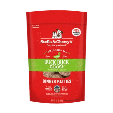 -Made in the USA - Duck Duck Goose Dinner Patties' all-natural recipe is crafted with care in small batches in Stella & Chewy's own USA kitchen to provide the highest levels of protein-rich meat and quality grain-free nutrition for your pet