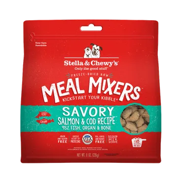 -Made in the USA - Savory Salmon & Cod Meal Mixers' all-natural recipe is crafted with care in small batches in Stella & Chewy's own USA kitchen to provide the highest levels of protein-rich meat and quality grain-free nutrition for your pet