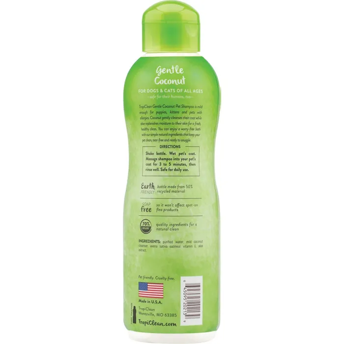 The bad news: it's time for your first bath. The good news: it's always followed by a treat! TropiClean Hypo-Allergenic Puppy & Kitten Shampoo is made specifically for your newest family member's bath-time. The extra-mild, soap-free formula won't irritate the skin and is gentle enough for puppies and kittens. TropiClean Hypo-Allergenic shampoo helps remove allergy-causing dander and the keeps your pal's skin itch-free.