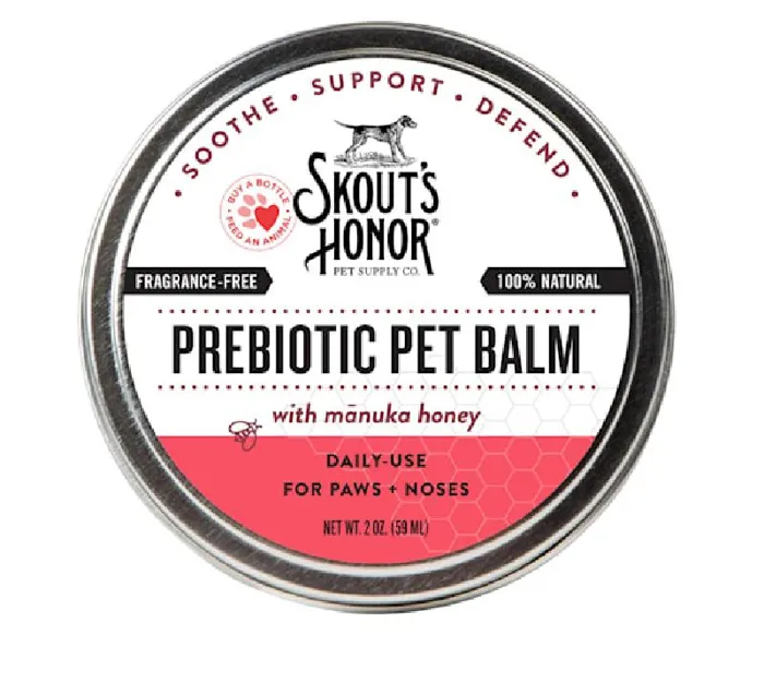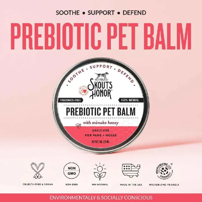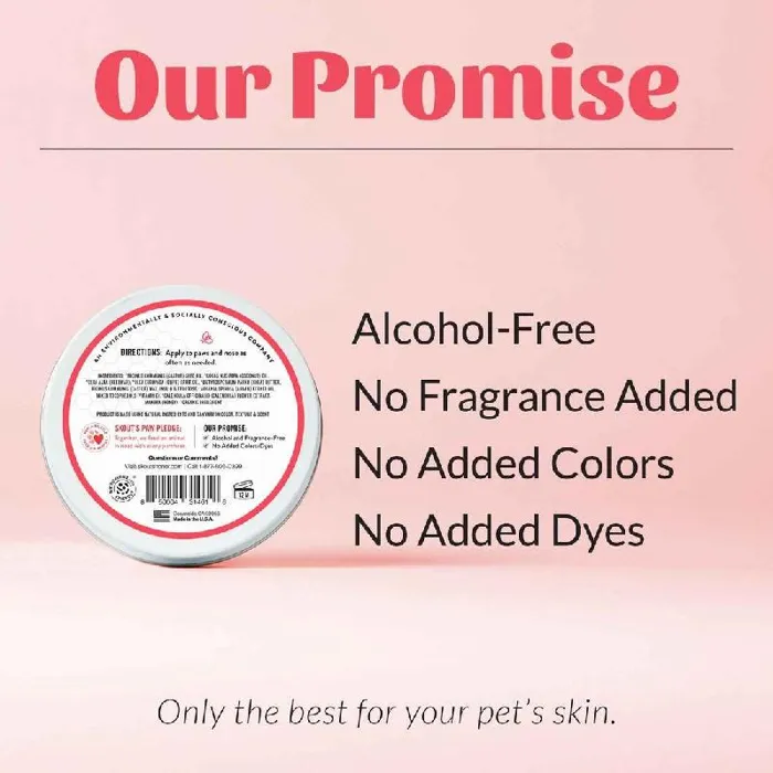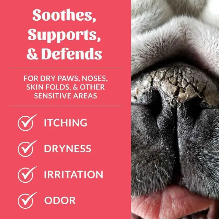 100% natural cat and dog paw and nose balm provides instant relief and ongoing protection while soothing dry, itchy paws and noses. Great for skin folds and other exposed pet parts!