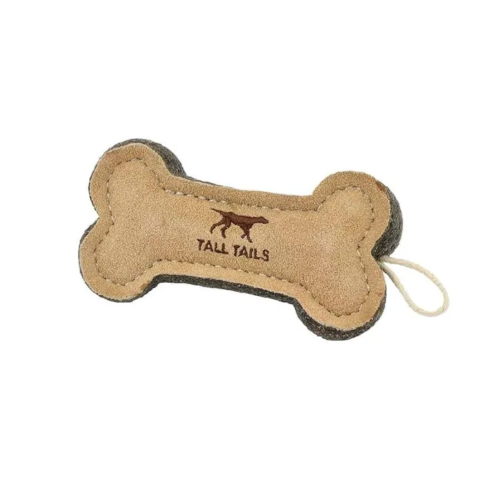 Tall Tails Dog Toy Natural Leather & Woll Bone 6"