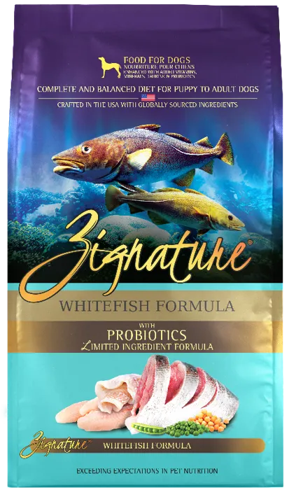 Whitefish, Whitefish Meal, Peas, Chickpeas, Pea Flour, Sunflower Oil (preserved with Citric Acid), Flaxseed, Dehydrated Alfalfa Meal, Natural Flavors, Salt, Minerals (Zinc Proteinate, Iron Proteinate, Copper Proteinate, Manganese Proteinate, Cobalt Proteinate), Potassium Chloride, Choline Chloride, Vitamins (Vitamin A Acetate, Vitamin D3 Supplement, Vitamin E Supplement, Niacin, d-Calcium Pantothenate, Thiamine Mononitrate, Pyridoxine Hydrochloride, Riboflavin Supplement, Folic Acid, Biotin, Vitamin B12 Supplement), Lactic Acid, Calcium Iodate, Sodium Selenite, Preserved With Mixed Tocopherols.Guaranteed Analysis